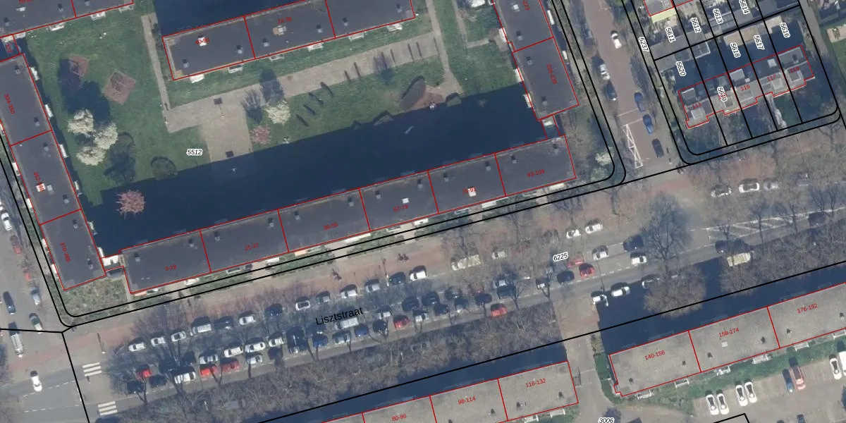 Het perceel waarop Lisztstraat 69 staat heeft een oppervlakte van 1,1 ha. Dit is een zeer groot perceel. De perceeloppervlakte wordt geregistreerd door het Kadaster. Gedetailleerde informatie over de maten van dit perceel kunt u vinden in het rapport Kadastrale kaart met maatvoering van Lisztstraat 69.
