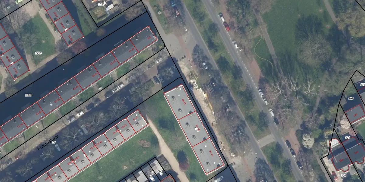 Het adres ligt op het perceel GVH37-AW-2488, dat zich in de kadastrale gemeente 's-Gravenhage bevindt. De oppervlakte van het perceel is 6217 m². Dat is groter dan gemiddeld in 's-Gravenhage, waar de gemiddelde perceeloppervlakte op 1320,78 m² ligt. Het grootste perceel in de kadastrale gemeente is 12,9 ha. Het kleinste perceel heeft een oppervlakte van 0 m². Op het perceel liggen in totaal 96 adressen. In de Basisregistratie Kadaster (BRK) werden de grenzen van het perceel geregistreerd op 26-10-2004.