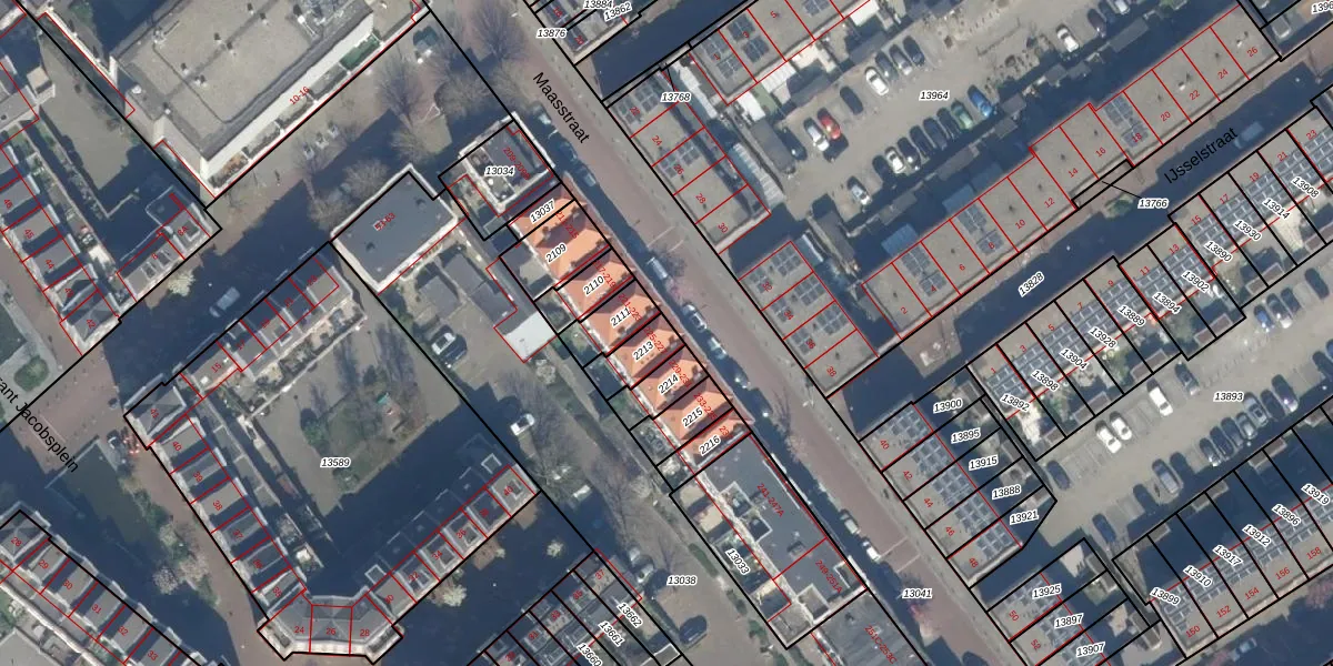 Maasstraat 225 is gelegen op kadastraal perceel GVH12R2213. Deze kadastrale aanduiding is uniek en wordt gebruikt door het Kadaster om eigendomsrechten en andere zakelijke rechten vast te leggen. Het perceel maakt onderdeel uit van de kadastrale gemeente 's-Gravenhage.