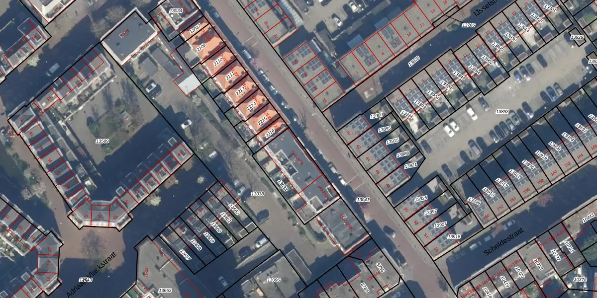 Het perceel waarop het adres ligt is GVH12-R-13033. De afkorting 'GVH12' staat voor kadastrale gemeente 's-Gravenhage. De gemiddelde perceelgrootte in 's-Gravenhage is 543,78 m². Dit perceel is kleiner: de perceeloppervlakte bedraagt 451 m². De grootste perceeloppervlakte in de kadastrale gemeente is 5,9 ha. De kleinste oppervlakte bedraagt 0 m². Er zijn 11 adressen aanwezig op het perceel. In de Basisregistratie Kadaster (BRK) werden de grenzen van het perceel geregistreerd op 09-12-2003.