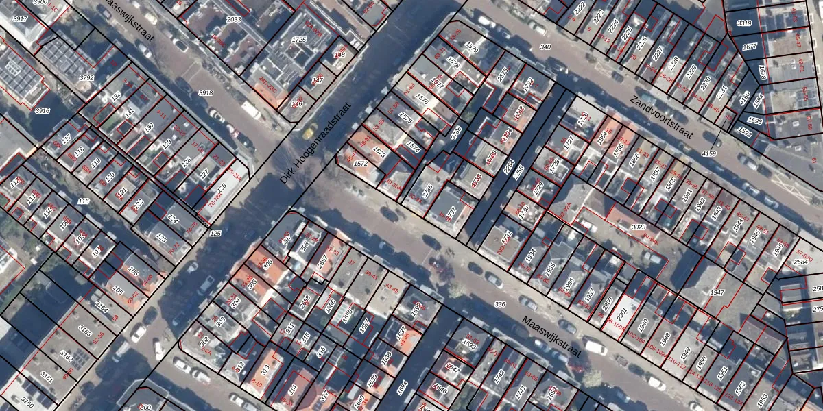 Het perceel waarop Maaswijkstraat 34 staat heeft een oppervlakte van 108 m². Dit is een middelgroot perceel. De perceeloppervlakte wordt geregistreerd door het Kadaster. Gedetailleerde informatie over de maten van dit perceel kunt u vinden in het rapport Kadastrale kaart met maatvoering van Maaswijkstraat 34.