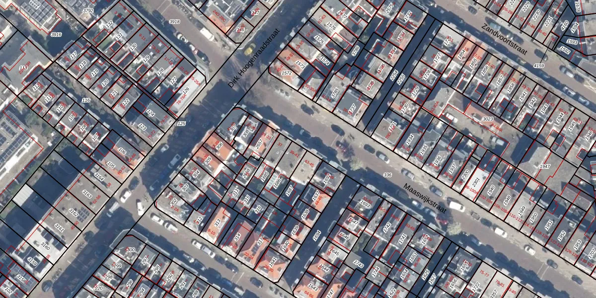 Het perceel waarop Maaswijkstraat 39 staat heeft een oppervlakte van 132 m². Dit is een middelgroot perceel. De perceeloppervlakte wordt geregistreerd door het Kadaster. Gedetailleerde informatie over de maten van dit perceel kunt u vinden in het rapport Kadastrale kaart met maatvoering van Maaswijkstraat 39.