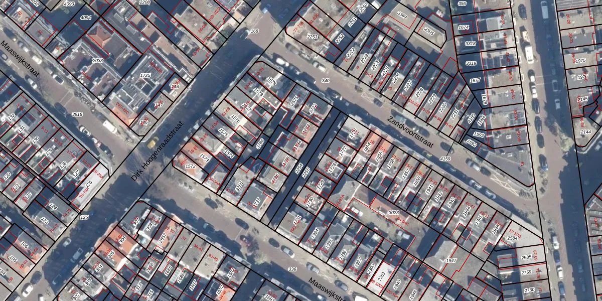 Het perceel waarop Maaswijkstraat 50 staat heeft een oppervlakte van 77 m². Dit is een klein perceel. De perceeloppervlakte wordt geregistreerd door het Kadaster. Gedetailleerde informatie over de maten van dit perceel kunt u vinden in het rapport Kadastrale kaart met maatvoering van Maaswijkstraat 50.