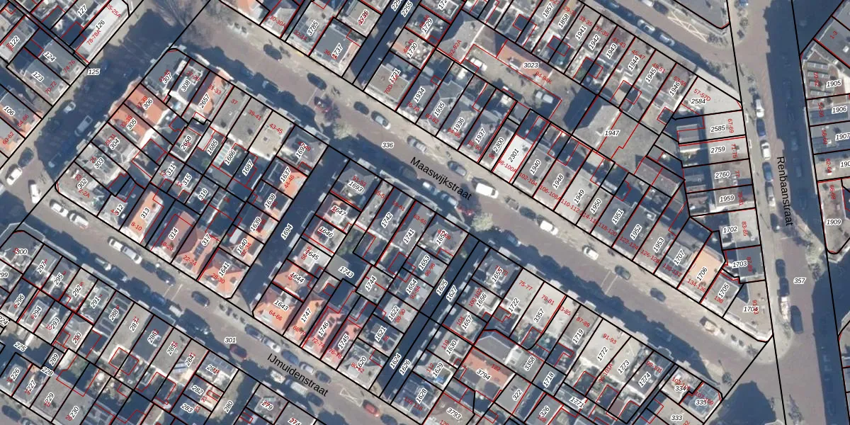 Het perceel waarop Maaswijkstraat 63 staat heeft een oppervlakte van 104 m². Dit is een middelgroot perceel. De perceeloppervlakte wordt geregistreerd door het Kadaster. Gedetailleerde informatie over de maten van dit perceel kunt u vinden in het rapport Kadastrale kaart met maatvoering van Maaswijkstraat 63.