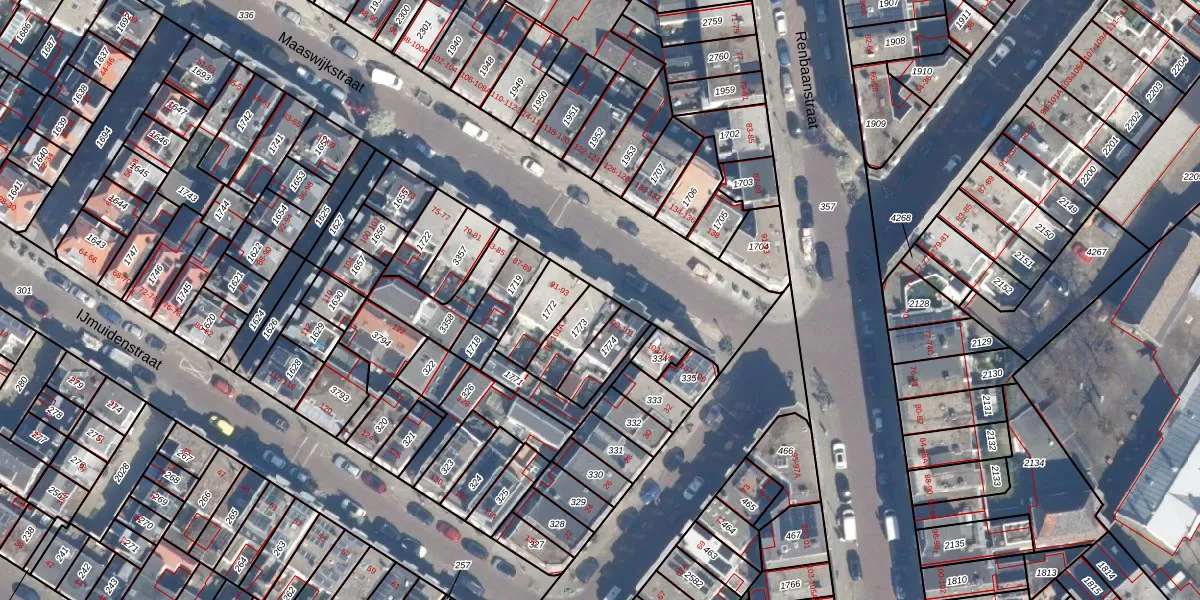 Het perceel waarop Maaswijkstraat 97 staat heeft een oppervlakte van 116 m². Dit is een middelgroot perceel. De perceeloppervlakte wordt geregistreerd door het Kadaster. Gedetailleerde informatie over de maten van dit perceel kunt u vinden in het rapport Kadastrale kaart met maatvoering van Maaswijkstraat 97.