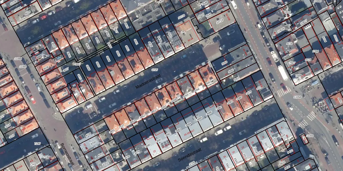 Het perceel waarop Madoerastraat 13 staat heeft een oppervlakte van 123 m². Dit is een middelgroot perceel. De perceeloppervlakte wordt geregistreerd door het Kadaster. Gedetailleerde informatie over de maten van dit perceel kunt u vinden in het rapport Kadastrale kaart met maatvoering van Madoerastraat 13.