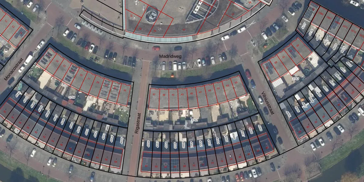 Madridweg 43 is gelegen op kadastraal perceel GVH39AY3761. Deze kadastrale aanduiding is uniek en wordt gebruikt door het Kadaster om eigendomsrechten en andere zakelijke rechten vast te leggen. Het perceel maakt onderdeel uit van de kadastrale gemeente 's-Gravenhage.