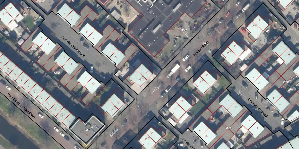 Madurolaan 21 is gelegen op kadastraal perceel GVH49BK2956. Deze kadastrale aanduiding is uniek en wordt gebruikt door het Kadaster om eigendomsrechten en andere zakelijke rechten vast te leggen. Het perceel maakt onderdeel uit van de kadastrale gemeente 's-Gravenhage.