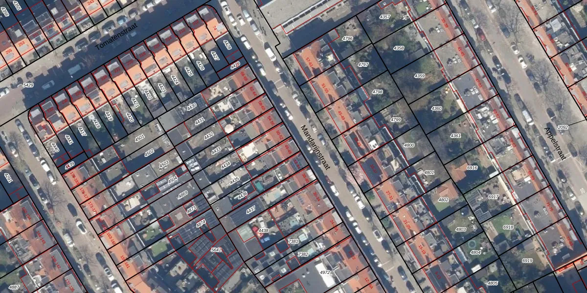 Mandarijnstraat 48 is gelegen op kadastraal perceel LDN03I4435. Deze kadastrale aanduiding is uniek en wordt gebruikt door het Kadaster om eigendomsrechten en andere zakelijke rechten vast te leggen. Het perceel maakt onderdeel uit van de kadastrale gemeente Loosduinen.