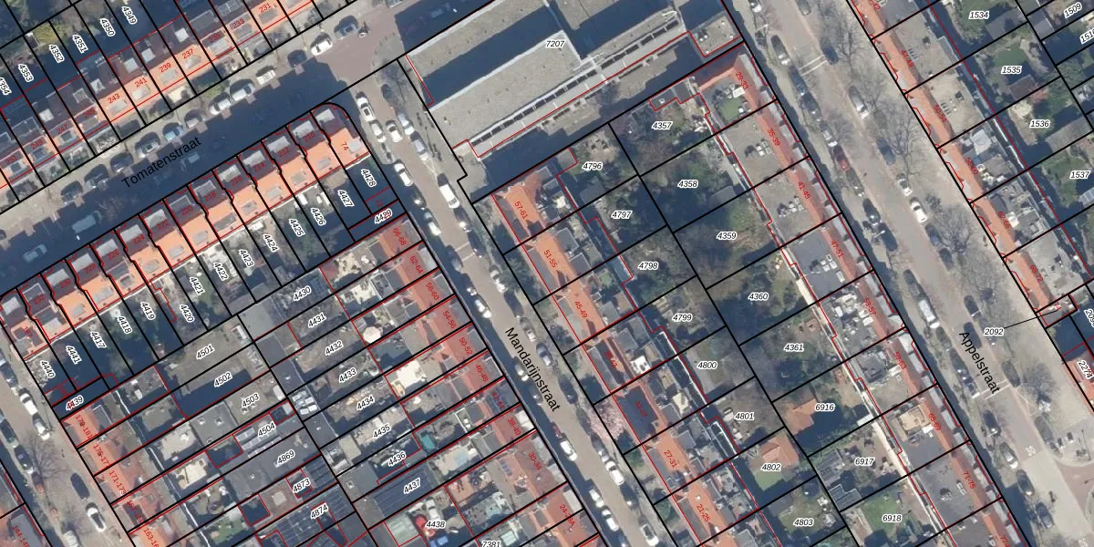 Het perceel waarop Mandarijnstraat 51 staat heeft een oppervlakte van 308 m². Dit is een groot perceel. De perceeloppervlakte wordt geregistreerd door het Kadaster. Gedetailleerde informatie over de maten van dit perceel kunt u vinden in het rapport Kadastrale kaart met maatvoering van Mandarijnstraat 51.