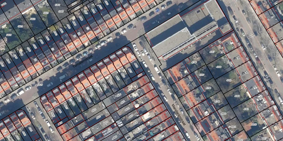 Mandarijnstraat 72 is gelegen op kadastraal perceel LDN03I4428. Deze kadastrale aanduiding is uniek en wordt gebruikt door het Kadaster om eigendomsrechten en andere zakelijke rechten vast te leggen. Het perceel maakt onderdeel uit van de kadastrale gemeente Loosduinen.