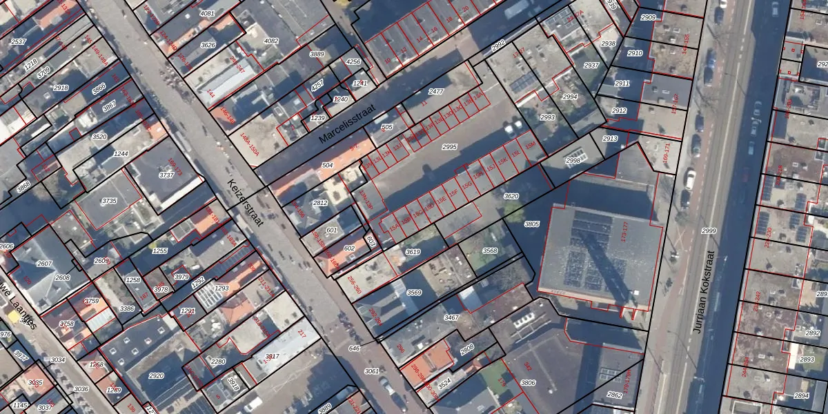 Het perceel waarop Marcelisstraat 15-C staat heeft een oppervlakte van 995 m². Dit is een groot perceel. De perceeloppervlakte wordt geregistreerd door het Kadaster. Gedetailleerde informatie over de maten van dit perceel kunt u vinden in het rapport Kadastrale kaart met maatvoering van Marcelisstraat 15-C.