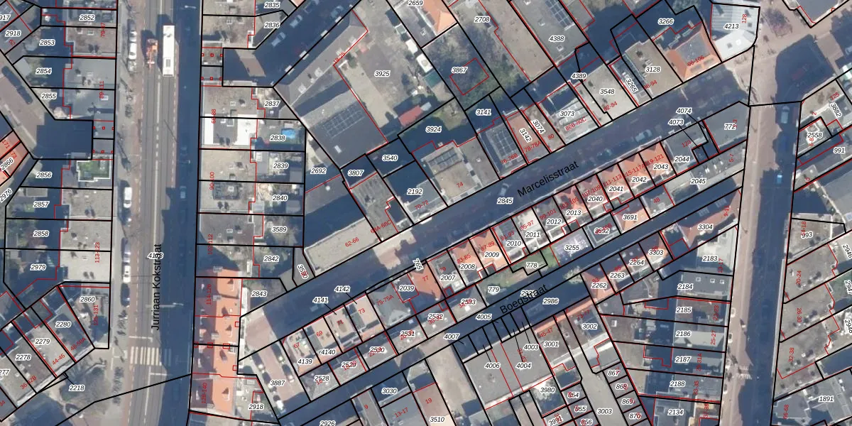 Het perceel waarop Marcelisstraat 70 staat heeft een oppervlakte van 116 m². Dit is een middelgroot perceel. De perceeloppervlakte wordt geregistreerd door het Kadaster. Gedetailleerde informatie over de maten van dit perceel kunt u vinden in het rapport Kadastrale kaart met maatvoering van Marcelisstraat 70.