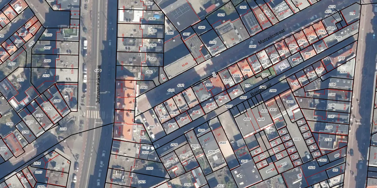 Het perceel waarop Marcelisstraat 73 staat heeft een oppervlakte van 62 m². Dit is een klein perceel. De perceeloppervlakte wordt geregistreerd door het Kadaster. Gedetailleerde informatie over de maten van dit perceel kunt u vinden in het rapport Kadastrale kaart met maatvoering van Marcelisstraat 73.