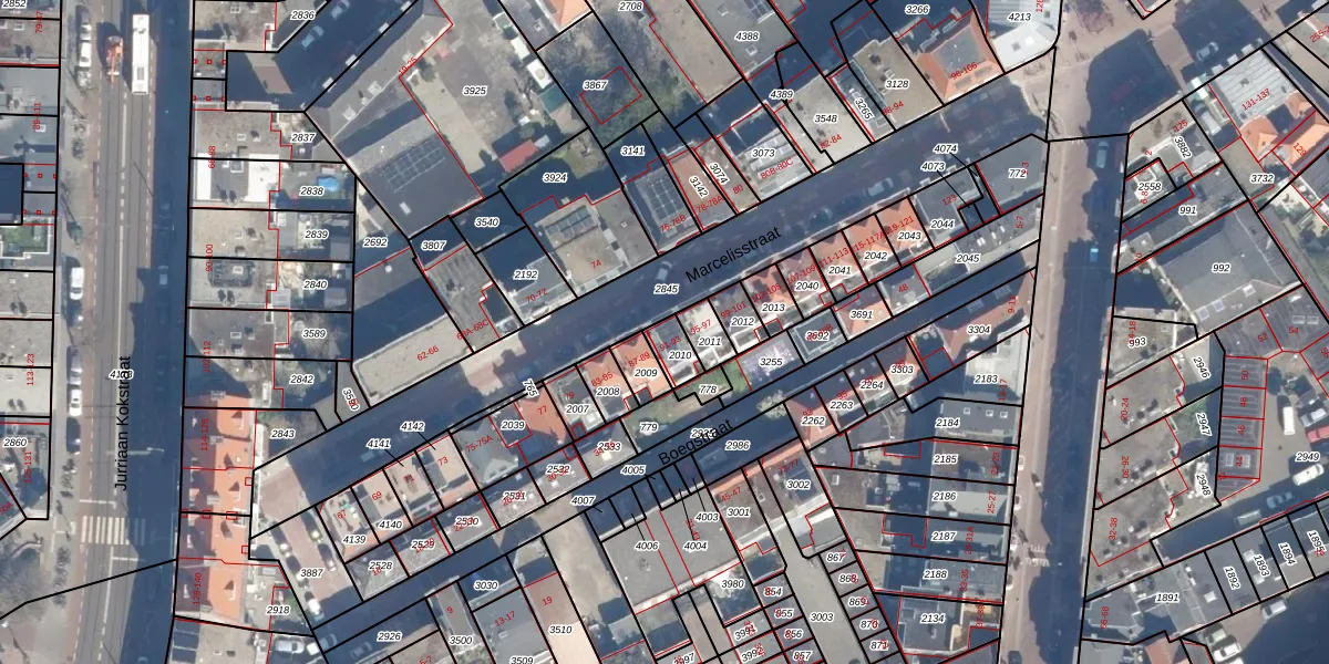 Het perceel waarop Marcelisstraat 91 staat heeft een oppervlakte van 55 m². Dit is een klein perceel. De perceeloppervlakte wordt geregistreerd door het Kadaster. Gedetailleerde informatie over de maten van dit perceel kunt u vinden in het rapport Kadastrale kaart met maatvoering van Marcelisstraat 91.