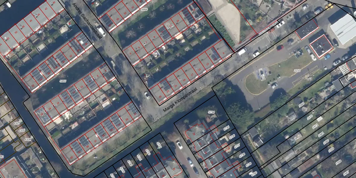 Het perceel waarop Marga Klompéstraat 21 staat heeft een oppervlakte van 5255 m². Dit is een zeer groot perceel. De perceeloppervlakte wordt geregistreerd door het Kadaster. Gedetailleerde informatie over de maten van dit perceel kunt u vinden in het rapport Kadastrale kaart met maatvoering van Marga Klompéstraat 21.