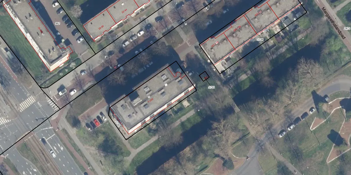 Het perceel waarop Margarethaland 21 staat heeft een oppervlakte van 1008 m². Dit is een zeer groot perceel. De perceeloppervlakte wordt geregistreerd door het Kadaster. Gedetailleerde informatie over de maten van dit perceel kunt u vinden in het rapport Kadastrale kaart met maatvoering van Margarethaland 21.