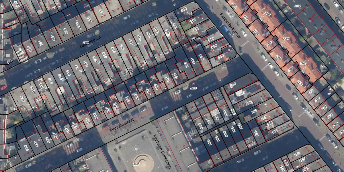 Het perceel waarop Mariottestraat 21 staat heeft een oppervlakte van 106 m². Dit is een middelgroot perceel. De perceeloppervlakte wordt geregistreerd door het Kadaster. Gedetailleerde informatie over de maten van dit perceel kunt u vinden in het rapport Kadastrale kaart met maatvoering van Mariottestraat 21.