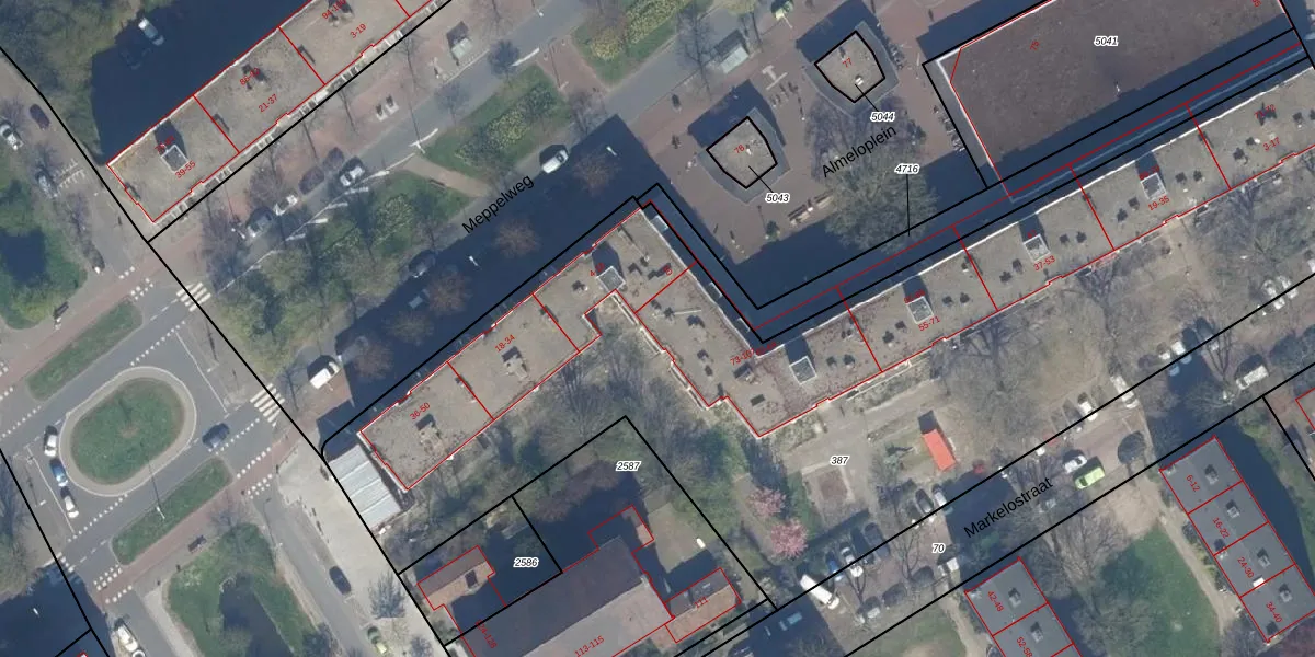 Het perceel waarop Markelostraat 103 staat heeft een oppervlakte van 5441 m². Dit is een zeer groot perceel. De perceeloppervlakte wordt geregistreerd door het Kadaster. Gedetailleerde informatie over de maten van dit perceel kunt u vinden in het rapport Kadastrale kaart met maatvoering van Markelostraat 103.