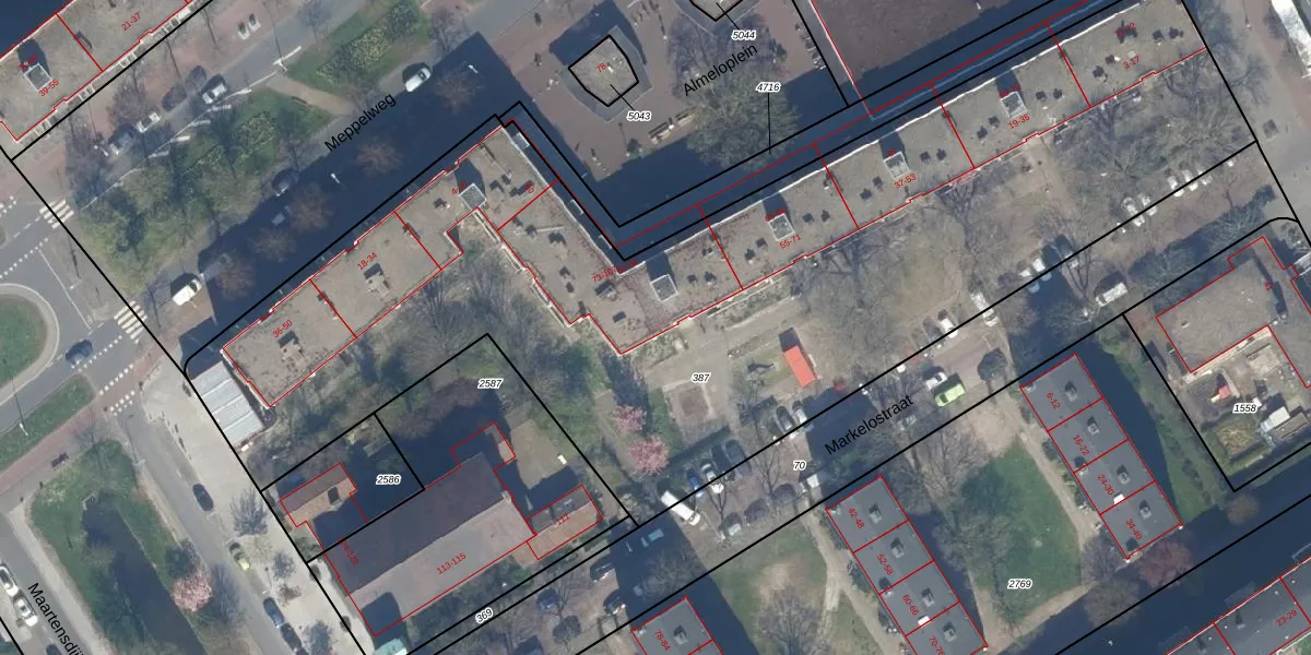 Het perceel waarop Markelostraat 89 staat heeft een oppervlakte van 5441 m². Dit is een zeer groot perceel. De perceeloppervlakte wordt geregistreerd door het Kadaster. Gedetailleerde informatie over de maten van dit perceel kunt u vinden in het rapport Kadastrale kaart met maatvoering van Markelostraat 89.