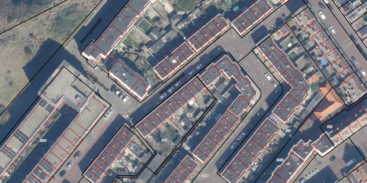 Het perceel waarop Markensestraat 10 staat heeft een oppervlakte van 989 m². Dit is een groot perceel. De perceeloppervlakte wordt geregistreerd door het Kadaster. Gedetailleerde informatie over de maten van dit perceel kunt u vinden in het rapport Kadastrale kaart met maatvoering van Markensestraat 10.