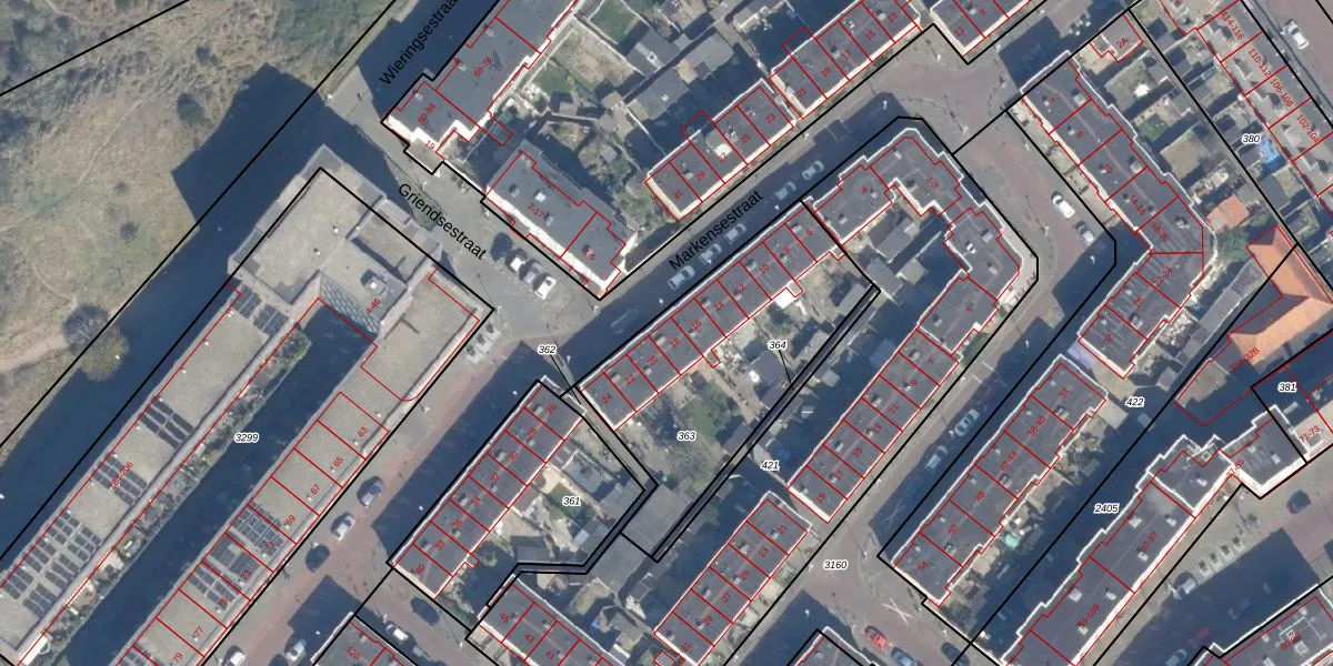 Het perceel waarop Markensestraat 18 staat heeft een oppervlakte van 989 m². Dit is een groot perceel. De perceeloppervlakte wordt geregistreerd door het Kadaster. Gedetailleerde informatie over de maten van dit perceel kunt u vinden in het rapport Kadastrale kaart met maatvoering van Markensestraat 18.