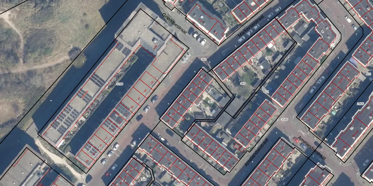 Het perceel waarop Markensestraat 32 staat heeft een oppervlakte van 690 m². Dit is een groot perceel. De perceeloppervlakte wordt geregistreerd door het Kadaster. Gedetailleerde informatie over de maten van dit perceel kunt u vinden in het rapport Kadastrale kaart met maatvoering van Markensestraat 32.