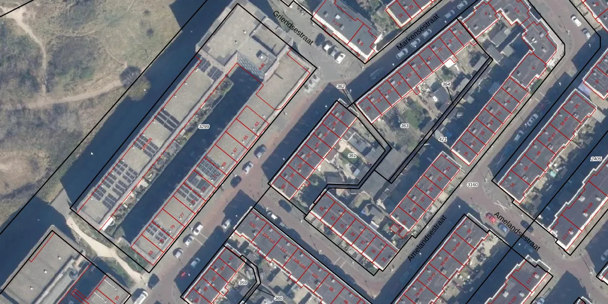 Het perceel waarop Markensestraat 34 staat heeft een oppervlakte van 690 m². Dit is een groot perceel. De perceeloppervlakte wordt geregistreerd door het Kadaster. Gedetailleerde informatie over de maten van dit perceel kunt u vinden in het rapport Kadastrale kaart met maatvoering van Markensestraat 34.