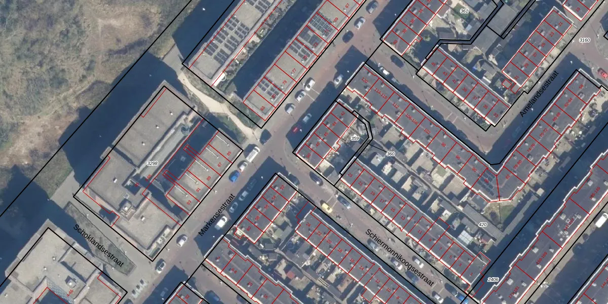 Het perceel waarop Markensestraat 50 staat heeft een oppervlakte van 355 m². Dit is een groot perceel. De perceeloppervlakte wordt geregistreerd door het Kadaster. Gedetailleerde informatie over de maten van dit perceel kunt u vinden in het rapport Kadastrale kaart met maatvoering van Markensestraat 50.