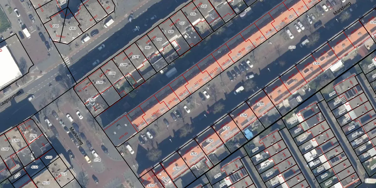 Marktweg 123 is gelegen op kadastraal perceel GVH20AC1331. Deze kadastrale aanduiding is uniek en wordt gebruikt door het Kadaster om eigendomsrechten en andere zakelijke rechten vast te leggen. Het perceel maakt onderdeel uit van de kadastrale gemeente 's-Gravenhage.