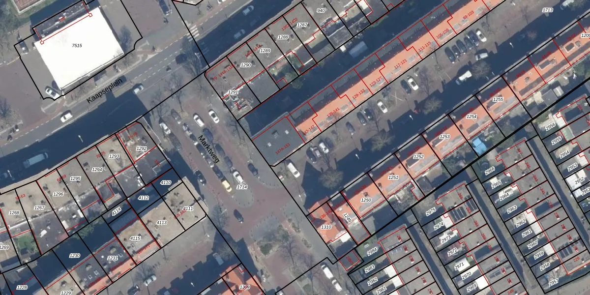 Marktweg 147-B is gelegen op kadastraal perceel GVH20AC1331. Deze kadastrale aanduiding is uniek en wordt gebruikt door het Kadaster om eigendomsrechten en andere zakelijke rechten vast te leggen. Het perceel maakt onderdeel uit van de kadastrale gemeente 's-Gravenhage.