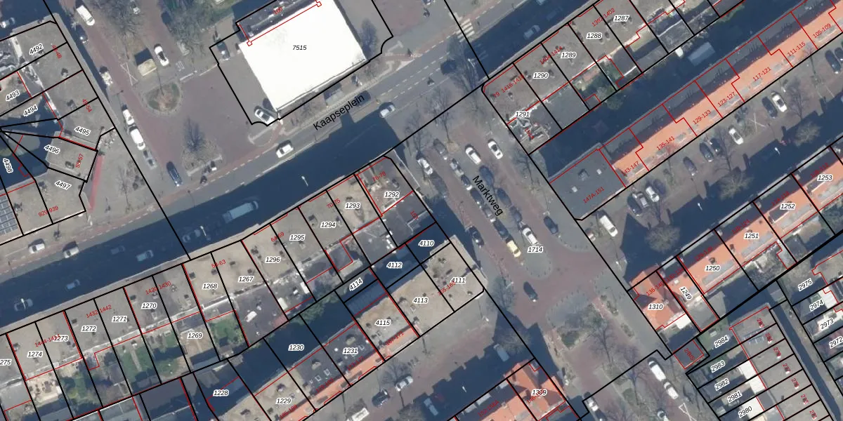 Marktweg 153 is gelegen op kadastraal perceel GVH20AC1292. Deze kadastrale aanduiding is uniek en wordt gebruikt door het Kadaster om eigendomsrechten en andere zakelijke rechten vast te leggen. Het perceel maakt onderdeel uit van de kadastrale gemeente 's-Gravenhage.
