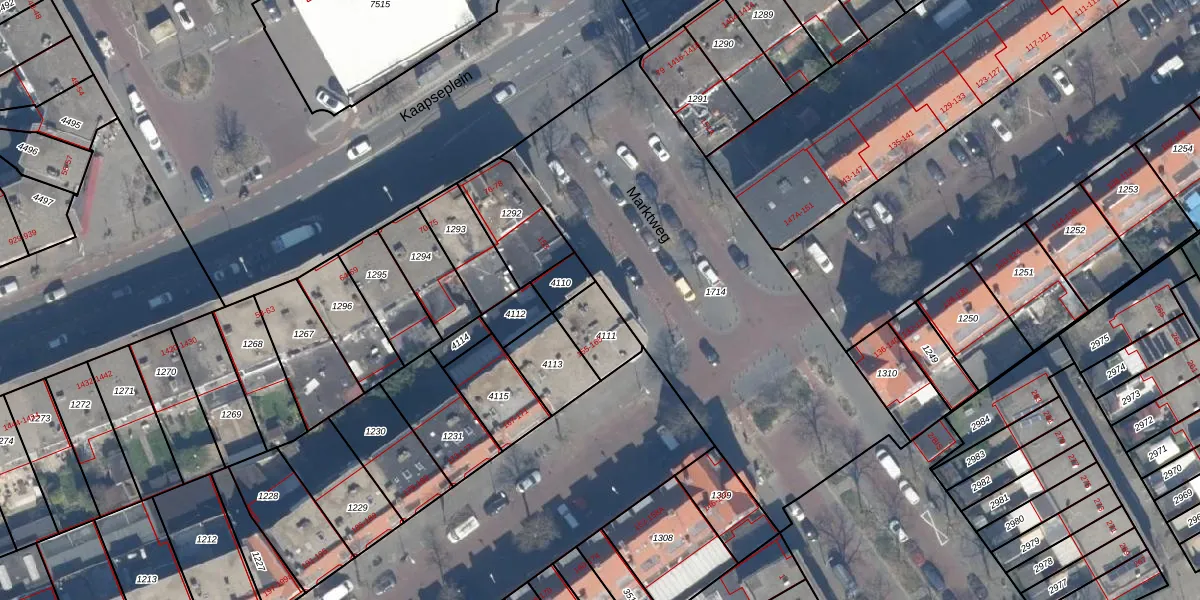 Marktweg 157 is gelegen op kadastraal perceel GVH20AC4111. Deze kadastrale aanduiding is uniek en wordt gebruikt door het Kadaster om eigendomsrechten en andere zakelijke rechten vast te leggen. Het perceel maakt onderdeel uit van de kadastrale gemeente 's-Gravenhage.