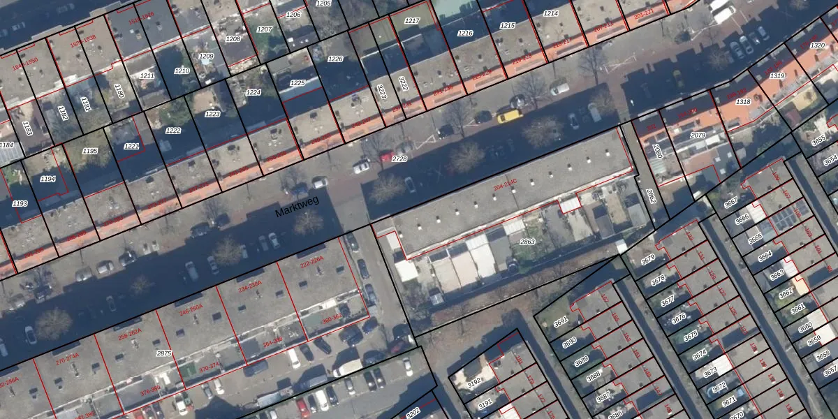 Marktweg 214-B is gelegen op kadastraal perceel GVH20AC2863. Deze kadastrale aanduiding is uniek en wordt gebruikt door het Kadaster om eigendomsrechten en andere zakelijke rechten vast te leggen. Het perceel maakt onderdeel uit van de kadastrale gemeente 's-Gravenhage.