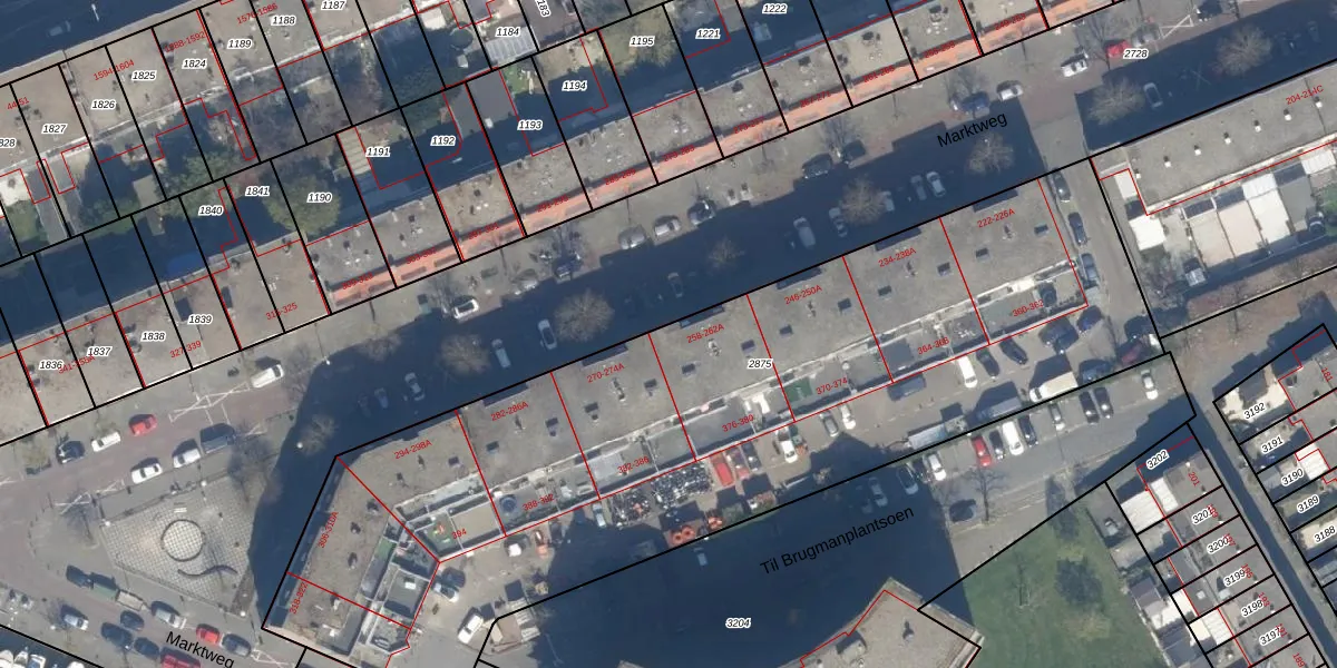Marktweg 260-A is gelegen op kadastraal perceel GVH20AC2875. Deze kadastrale aanduiding is uniek en wordt gebruikt door het Kadaster om eigendomsrechten en andere zakelijke rechten vast te leggen. Het perceel maakt onderdeel uit van de kadastrale gemeente 's-Gravenhage.