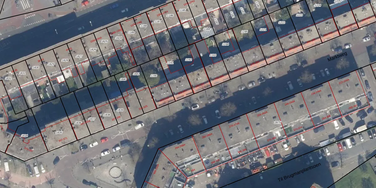Het perceel waarop Marktweg 303 staat heeft een oppervlakte van 262 m². Dit is een middelgroot perceel. De perceeloppervlakte wordt geregistreerd door het Kadaster. Gedetailleerde informatie over de maten van dit perceel kunt u vinden in het rapport Kadastrale kaart met maatvoering van Marktweg 303.