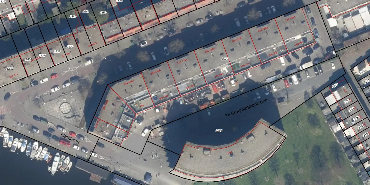 Het perceel waarop Marktweg 386 staat heeft een oppervlakte van 4215 m². Dit is een zeer groot perceel. De perceeloppervlakte wordt geregistreerd door het Kadaster. Gedetailleerde informatie over de maten van dit perceel kunt u vinden in het rapport Kadastrale kaart met maatvoering van Marktweg 386.
