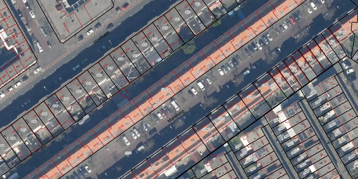 Marktweg 57 is gelegen op kadastraal perceel GVH20AC1331. Deze kadastrale aanduiding is uniek en wordt gebruikt door het Kadaster om eigendomsrechten en andere zakelijke rechten vast te leggen. Het perceel maakt onderdeel uit van de kadastrale gemeente 's-Gravenhage.
