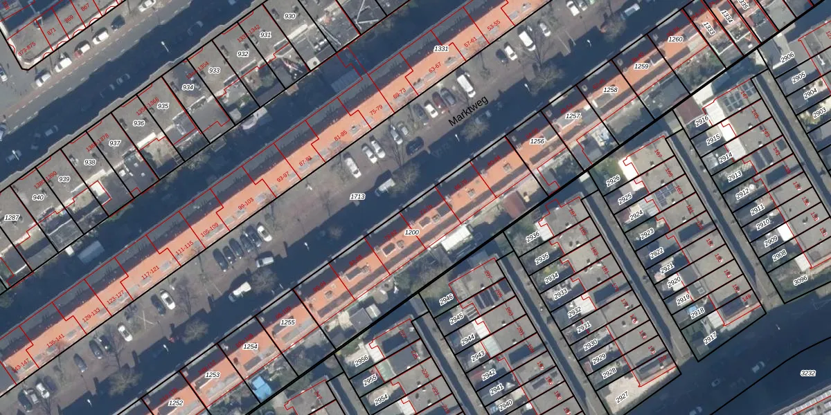 Marktweg 74 is gelegen op kadastraal perceel GVH20AC1200. Deze kadastrale aanduiding is uniek en wordt gebruikt door het Kadaster om eigendomsrechten en andere zakelijke rechten vast te leggen. Het perceel maakt onderdeel uit van de kadastrale gemeente 's-Gravenhage.