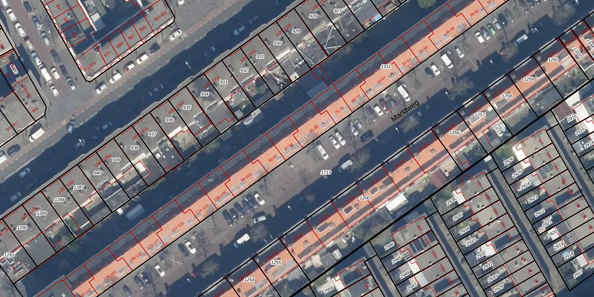 Marktweg 87 is gelegen op kadastraal perceel GVH20AC1331. Deze kadastrale aanduiding is uniek en wordt gebruikt door het Kadaster om eigendomsrechten en andere zakelijke rechten vast te leggen. Het perceel maakt onderdeel uit van de kadastrale gemeente 's-Gravenhage.