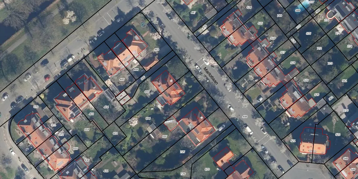 Marlotlaan 13 is gelegen op kadastraal perceel GVH33AR694. Deze kadastrale aanduiding is uniek en wordt gebruikt door het Kadaster om eigendomsrechten en andere zakelijke rechten vast te leggen. Het perceel maakt onderdeel uit van de kadastrale gemeente 's-Gravenhage.