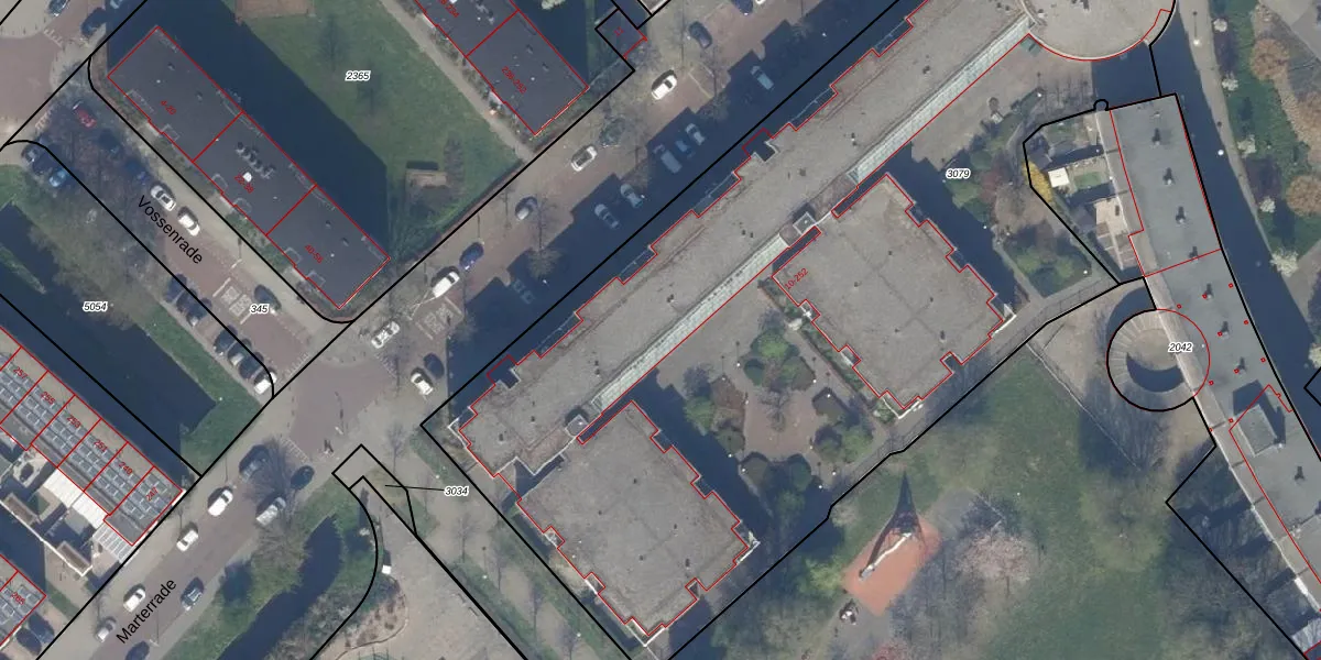 Het perceel waarop Marterrade 222 staat heeft een oppervlakte van 5930 m². Dit is een zeer groot perceel. De perceeloppervlakte wordt geregistreerd door het Kadaster. Gedetailleerde informatie over de maten van dit perceel kunt u vinden in het rapport Kadastrale kaart met maatvoering van Marterrade 222.
