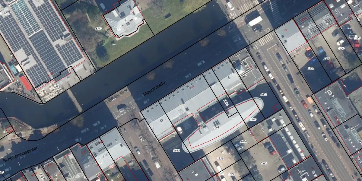 Mauritskade 17 is gelegen op kadastraal perceel GVH02E2693. Deze kadastrale aanduiding is uniek en wordt gebruikt door het Kadaster om eigendomsrechten en andere zakelijke rechten vast te leggen. Het perceel maakt onderdeel uit van de kadastrale gemeente 's-Gravenhage.