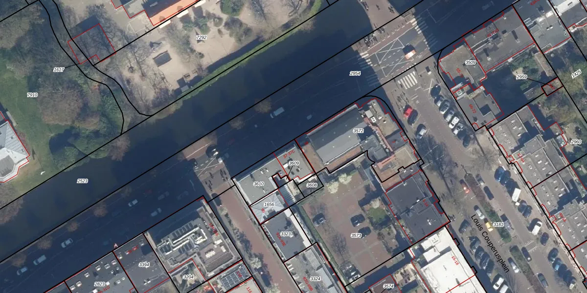 Het adres ligt op het perceel GVH02-E-3610, dat zich in de kadastrale gemeente 's-Gravenhage bevindt. Het perceel is 287 m² groot. Dat is kleiner dan de gemiddelde perceeloppervlakte in 's-Gravenhage, dat op 455,04 m² ligt. Het grootste perceel in de kadastrale gemeente is 3,9 ha. Het kleinste perceel heeft een oppervlakte van 1 m². Op het perceel zijn 14 adressen aanwezig. In de Basisregistratie Kadaster (BRK) werden de grenzen van het perceel geregistreerd op 22-02-2006.