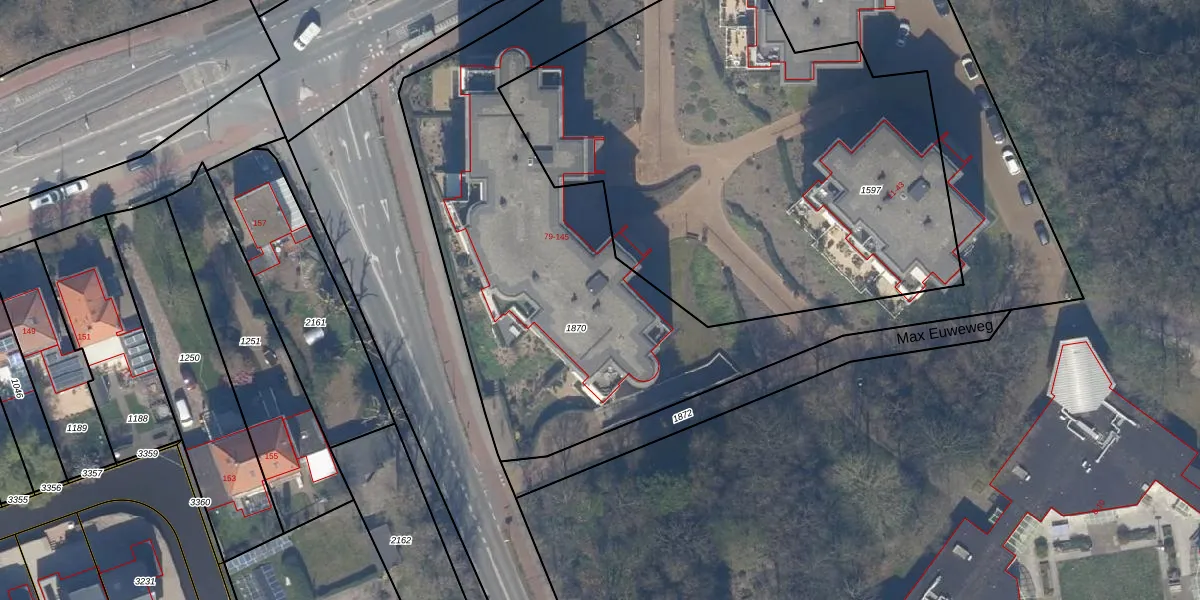 Het perceel waarop Max Euweweg 135 staat heeft een oppervlakte van 4095 m². Dit is een zeer groot perceel. De perceeloppervlakte wordt geregistreerd door het Kadaster. Gedetailleerde informatie over de maten van dit perceel kunt u vinden in het rapport Kadastrale kaart met maatvoering van Max Euweweg 135.