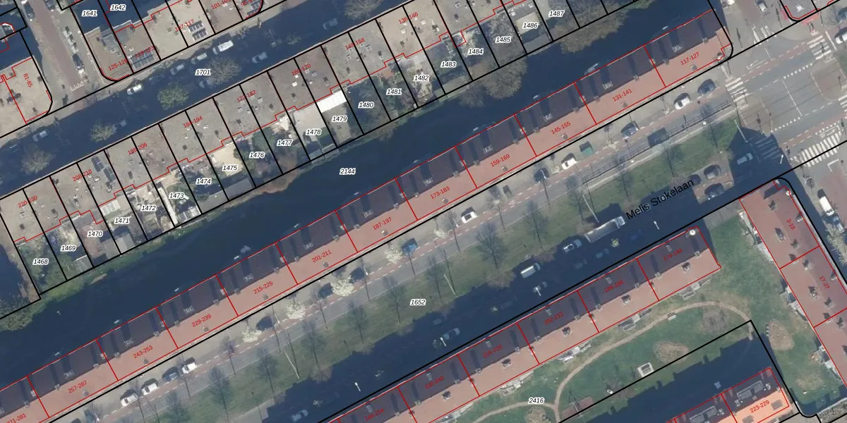 Melis Stokelaan 179 is gelegen op kadastraal perceel GVH20AC2144. Deze kadastrale aanduiding is uniek en wordt gebruikt door het Kadaster om eigendomsrechten en andere zakelijke rechten vast te leggen. Het perceel maakt onderdeel uit van de kadastrale gemeente 's-Gravenhage.