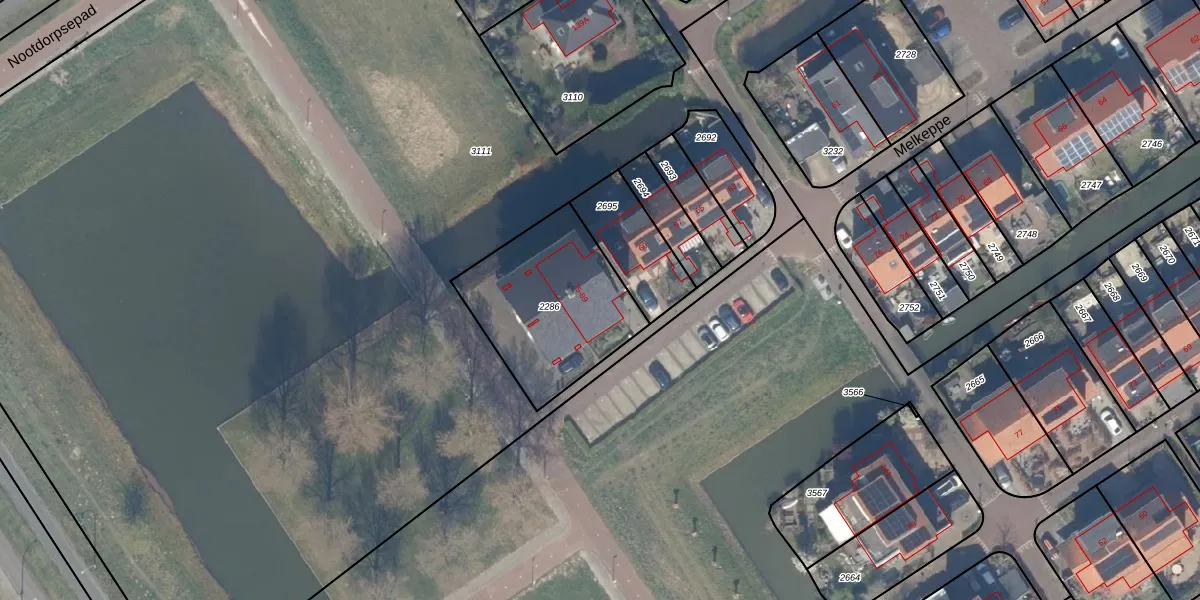Het perceel waarop Melkeppe 75 staat heeft een oppervlakte van 599 m². Dit is een groot perceel. De perceeloppervlakte wordt geregistreerd door het Kadaster. Gedetailleerde informatie over de maten van dit perceel kunt u vinden in het rapport Kadastrale kaart met maatvoering van Melkeppe 75.