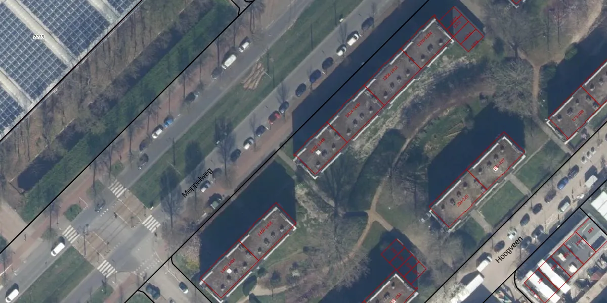 Meppelweg 1448 is gelegen op kadastraal perceel GVH37AW2114. Deze kadastrale aanduiding is uniek en wordt gebruikt door het Kadaster om eigendomsrechten en andere zakelijke rechten vast te leggen. Het perceel maakt onderdeel uit van de kadastrale gemeente 's-Gravenhage.