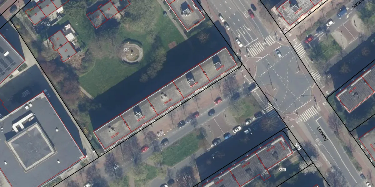 Het perceel waarop het adres ligt is GVH37-AW-380. De afkorting 'GVH37' staat voor kadastrale gemeente 's-Gravenhage. De gemiddelde perceeloppervlakte in de kadastrale gemeente 's-Gravenhage is 1320,78 m². Dit perceel is met zijn 8470 m² dus groter dan gemiddeld. De grootste perceeloppervlakte in de kadastrale gemeente is 12,9 ha. De kleinste oppervlakte bedraagt 0 m². Er zijn 82 adressen aanwezig op het perceel. In de Basisregistratie Kadaster (BRK) werden de grenzen van het perceel geregistreerd op 26-10-2004.