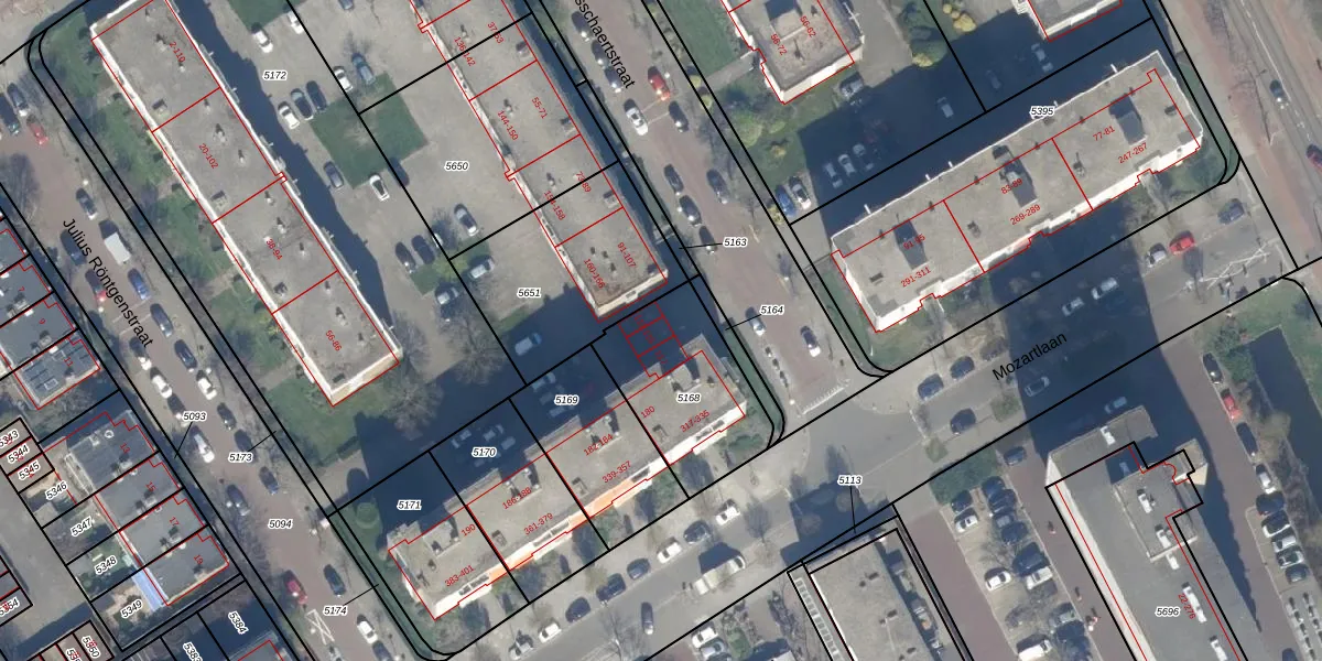 Het perceel waarop Messchaertstraat 115 staat heeft een oppervlakte van 476 m². Dit is een groot perceel. De perceeloppervlakte wordt geregistreerd door het Kadaster. Gedetailleerde informatie over de maten van dit perceel kunt u vinden in het rapport Kadastrale kaart met maatvoering van Messchaertstraat 115.
